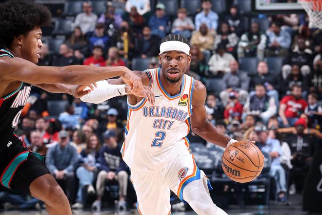 毫无疑问,榜首的位置属于卫冕冠军雷霆队,在包括二当家杰伦威廉姆斯长时间缺席的情况下,战绩依旧稳居联盟第一,期间交出同期第一的防守效率与净效率,第7的进攻效率。
